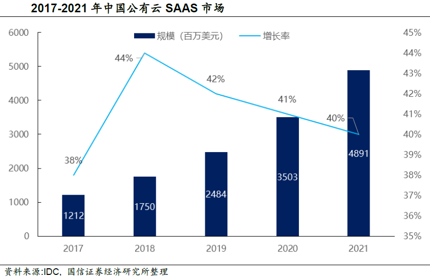 参照美国SaaS市场的发展历程,小而美的SaaS产品更容易切入市场,无论是Salesforce、ServiceNow、Workday等云时代的新公司,还是微软、Oracle、SAP做传统软件巨头云转型,都是以单一功能的产品为主。在国内市场上,国信证券认为长尾企业更可能是巨头的市场,目前阿里钉钉已经在协同办公市场做到700万企业客户、1亿注册用户,微信企业版等产品也在跟进。而大企业客户的IT产品和服务具备更高的业务壁垒、更强的客户付费能力,传统上领先的软件公司更有可能在SaaS上做到领先。