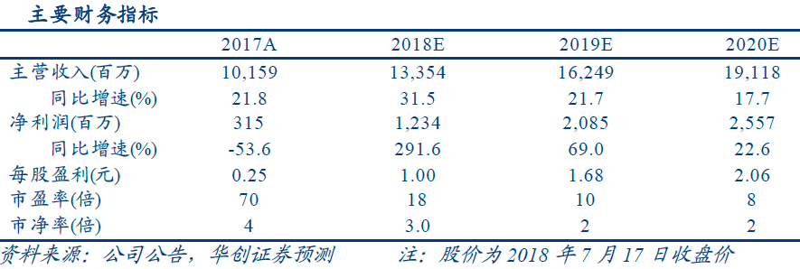 华创证券判断肉鸡产业链已反转,公司有望充分受益鸡肉价格上涨。预计2018~2020年公司将分别实现归母净利润12.34亿元、20.85亿元、25.57亿元,分别实现每股收益1.0元、1.68元、2.06元。畜禽板块在盈利高点估值超过20倍,给予公司2019年15倍PE,对应目标价25.2元,由于公司业绩有望超预期,上调至“强推”评级。