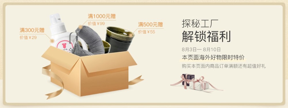 为配合此次甄选家•工厂考察团活动,网易严选相关海外商品于8月3日开始进行为期一周的促销活动,除数十款海外商品将惊喜放“价”外,严选还推出多重“满赠”优惠,不容错过。