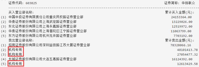 在卖出排行榜上,机构卖出最多的华扬联众有3家机构卖出,净卖出金额8777万元。