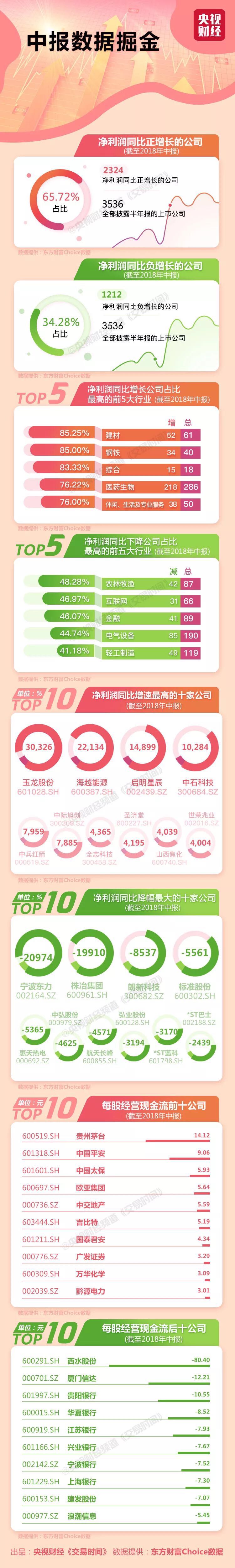 截止2018年8月31日,A股上市公司中,除个别新公司不需要披露及ST长生无法正常披露外,共计3536家上市公司已披露2018年半年报数据。