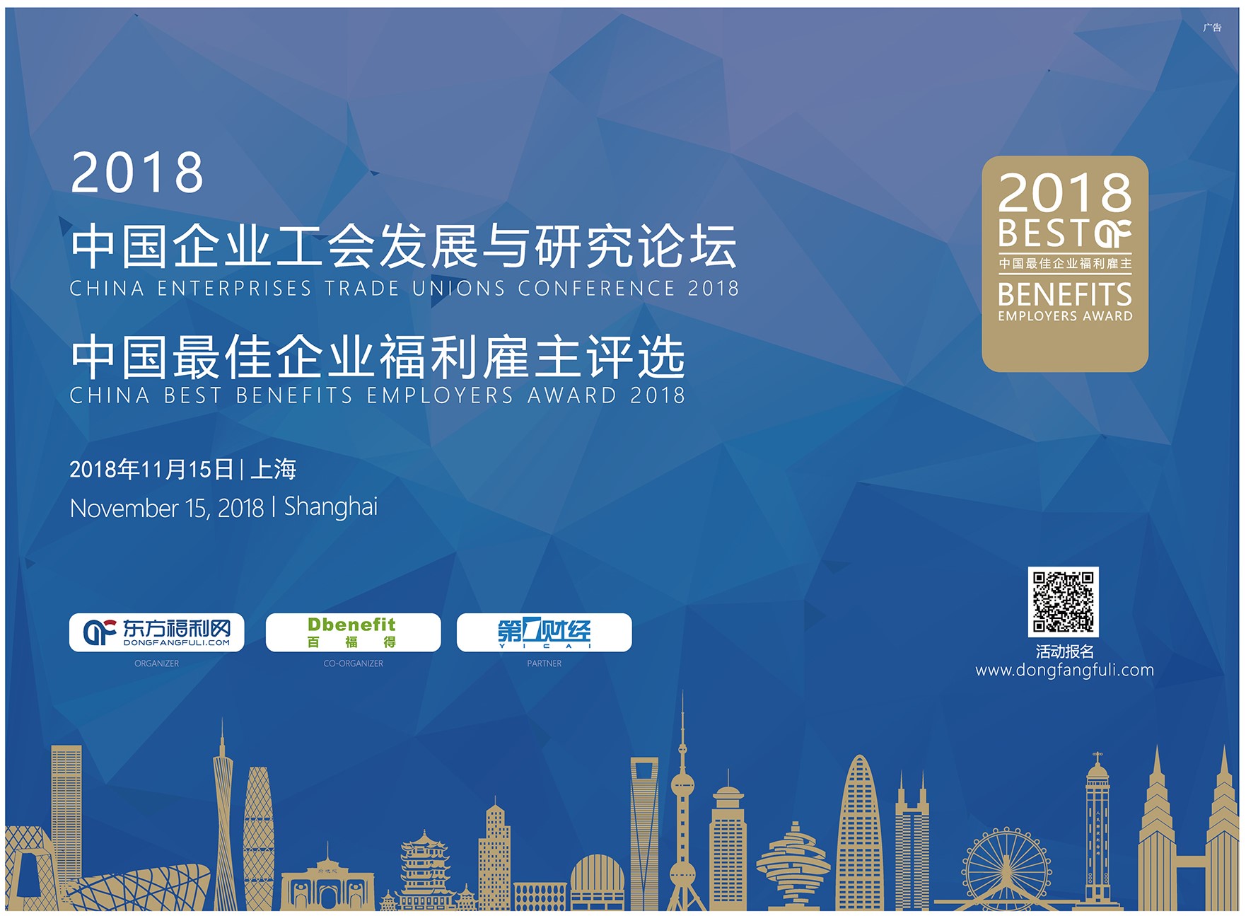 本次评选现已接受报名,企业可通过www.dongfangfuli.com 进行报名参评。同期,“2018中国企业工会发展与研究论坛“也将在上海举行。