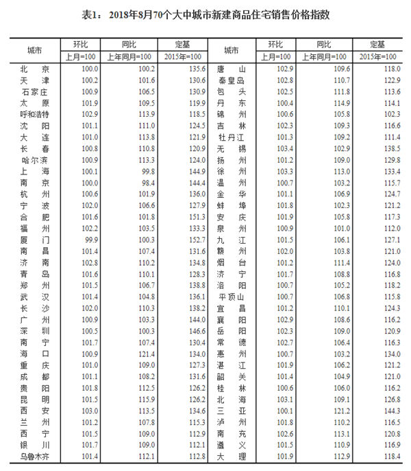 国家统计局15日发布了8月份70个大中城市商品住宅销售价格变动情况统计数据。一二线城市商品住宅销售价格变动总体平稳,三线城市商品住宅销售价格有所上涨。