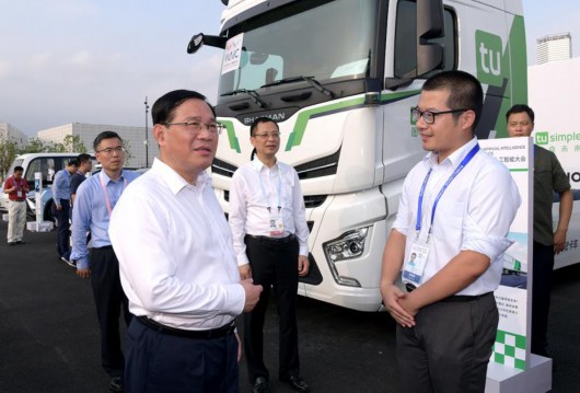 随后,市领导前往人工智能交通展区,蔚来公司、威马公司、小马科技公司等20余家企业在这里展示无人驾驶技术及智能车辆的最新应用。李强察看了自动化、安全化的无人驾驶演示,了解自动驾驶中的复杂环境感知、高精度定位导航、智能决策控制等核心技术,勉励企业提升原始创新、自主创新能力,加快人工智能和实体经济深度融合,实现更好发展。