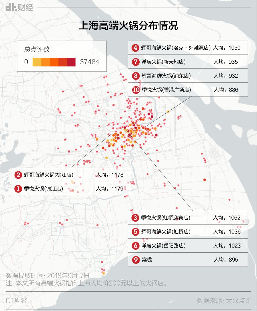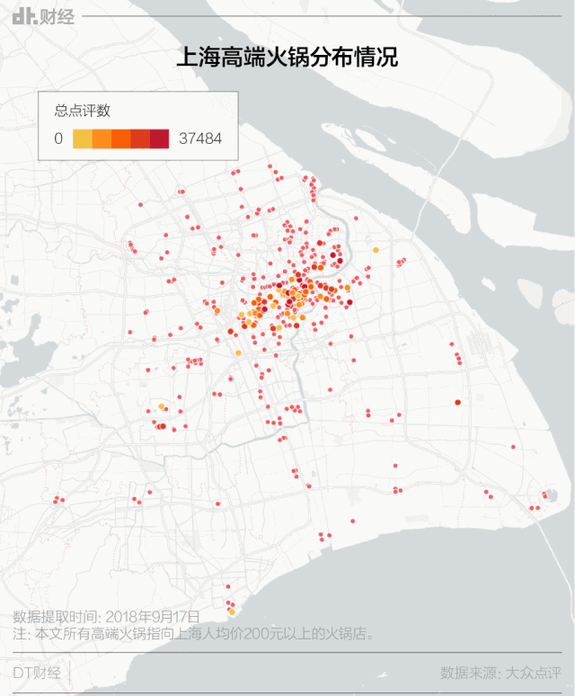 我们很好奇,火锅百味对应不同的生活场景,它是如何俘获这座城市的?关联着城市人怎样的生活变迁?DT君采集大众点评官网上海火锅店的信息(截至2018年9月),做了一些研究。