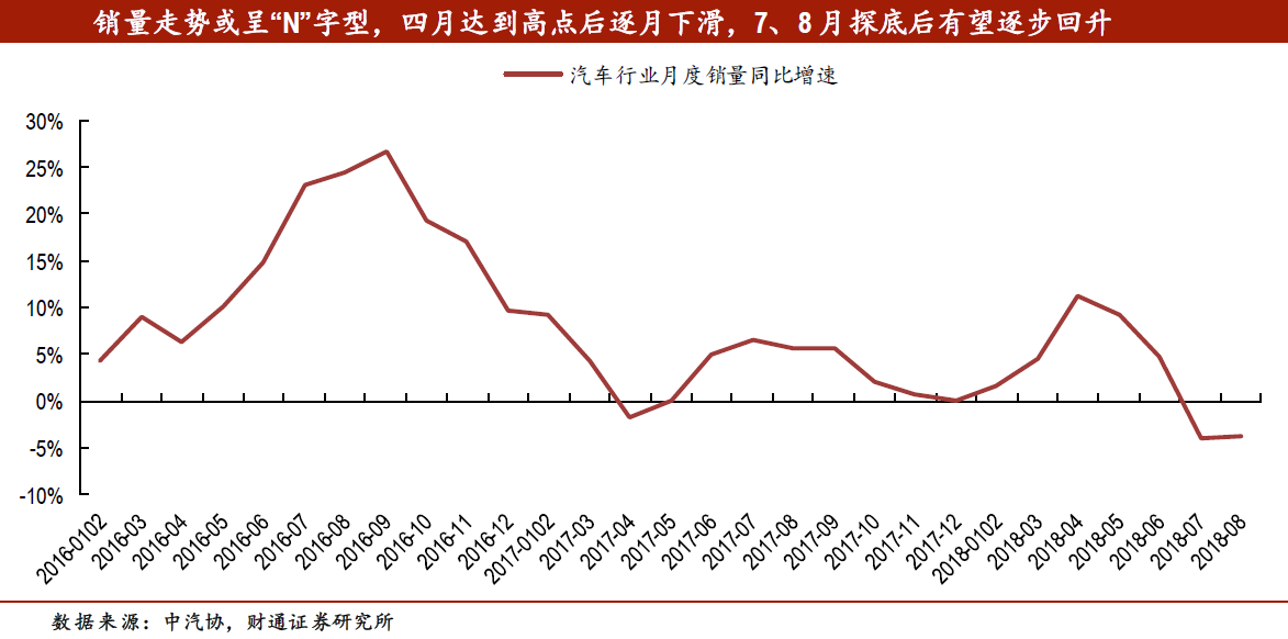 财通证券认为,受去年年底厂家提前完成目标带来销量转移的影响,今年12月行业销量同比增速有望转正。全年来看行业销量走势在4月达到阶段性高点后逐渐下行,至7、8月达到底部,后续有望回升,全年销量走势或呈“N”字形,符合预期。