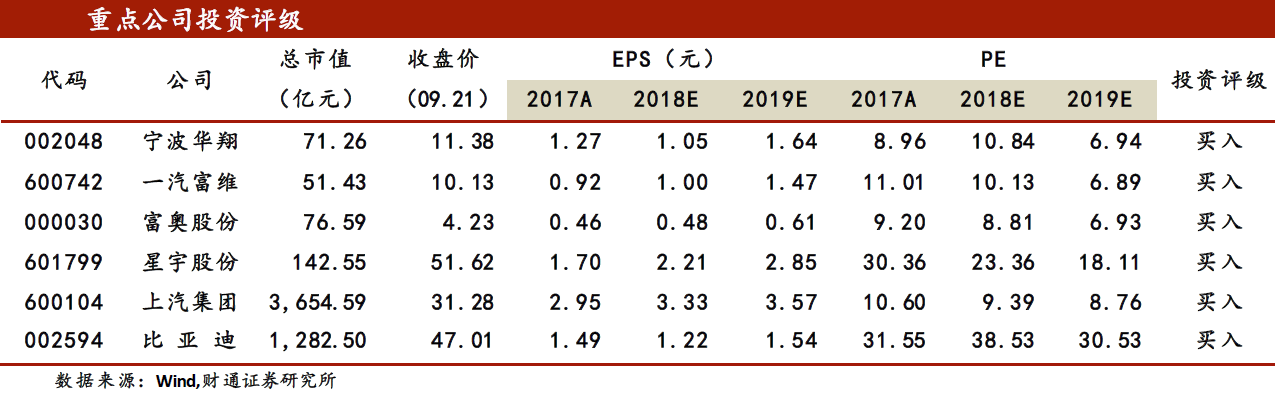 9月20日,中央出台了《关于完善促进消费体制机制,进一步激发居民消费潜力的若干意见》,意见中指出:①促进汽车消费优化升级,鼓励和引导农村居民增加汽车消费,农村市场有望成为汽车销量的全新增长点;②加强城市停车场和新能源汽车充电设施建设,解决消费者后顾之忧。财通证券认为,汽车行业有望大幅受益于本次促进消费的政策。在行业基本面逐渐好转的背景下叠加促进消费政策的刺激,行业估值有望快速修复,整车及零部件企业均有望受益。