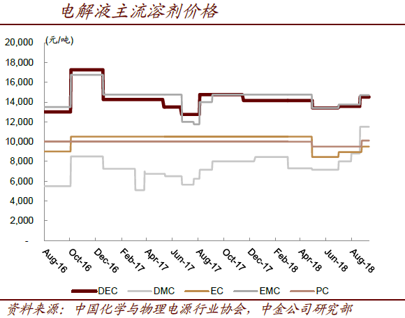 进入9月之后,主流电解液厂商开始上调产品价格,涨幅在5~10%,上涨主要受成本端溶剂DMC(碳酸二甲酯)价格上涨驱动。2018年上半年电解液价格战竞争激烈,龙头公司盈利能力下降明显,国盛证券认为此次主流电解液厂商开始上调报价,将成本压力向下游电池厂商传导表明电解液价格底部拐点已现。在高镍化趋势下,电解液技术难度提升,公司具备领先的电解液开发能力,目前已量产十余种关键添加剂,其中多种添加剂拥有专利,形成强有力的专利保护,公司差异化研发能力带来的竞争优势在逐步放大。公司已形成电解液及上游添加剂、新型锂盐、溶剂等产业链关键环节布局,产能稳步扩张,为后续业绩稳步增长奠定坚实基础。