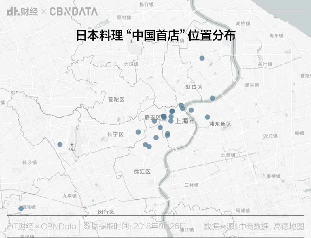 日料中的“中国首店”聚集在南京西路和南京东路,长宁来福士附近、徐家汇、打浦桥也分布着一些。