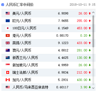 10月11日,人民币兑美元中间价报6.9098,调贬26点。上一交易日中间价6.9072;上一交易日官方收盘价报6.9194,上一交易日夜盘收盘报6.9240。同时,中国央行今日不开展公开市场操作,连续第九个交易日不操作,今日无逆回购到期。