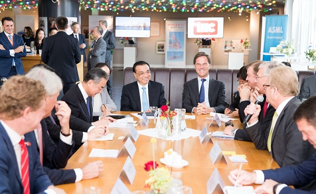 当地时间10月16日上午,李克强总理与荷兰首相吕特在海牙共同出席荷兰高新技术展和企业家圆桌会。