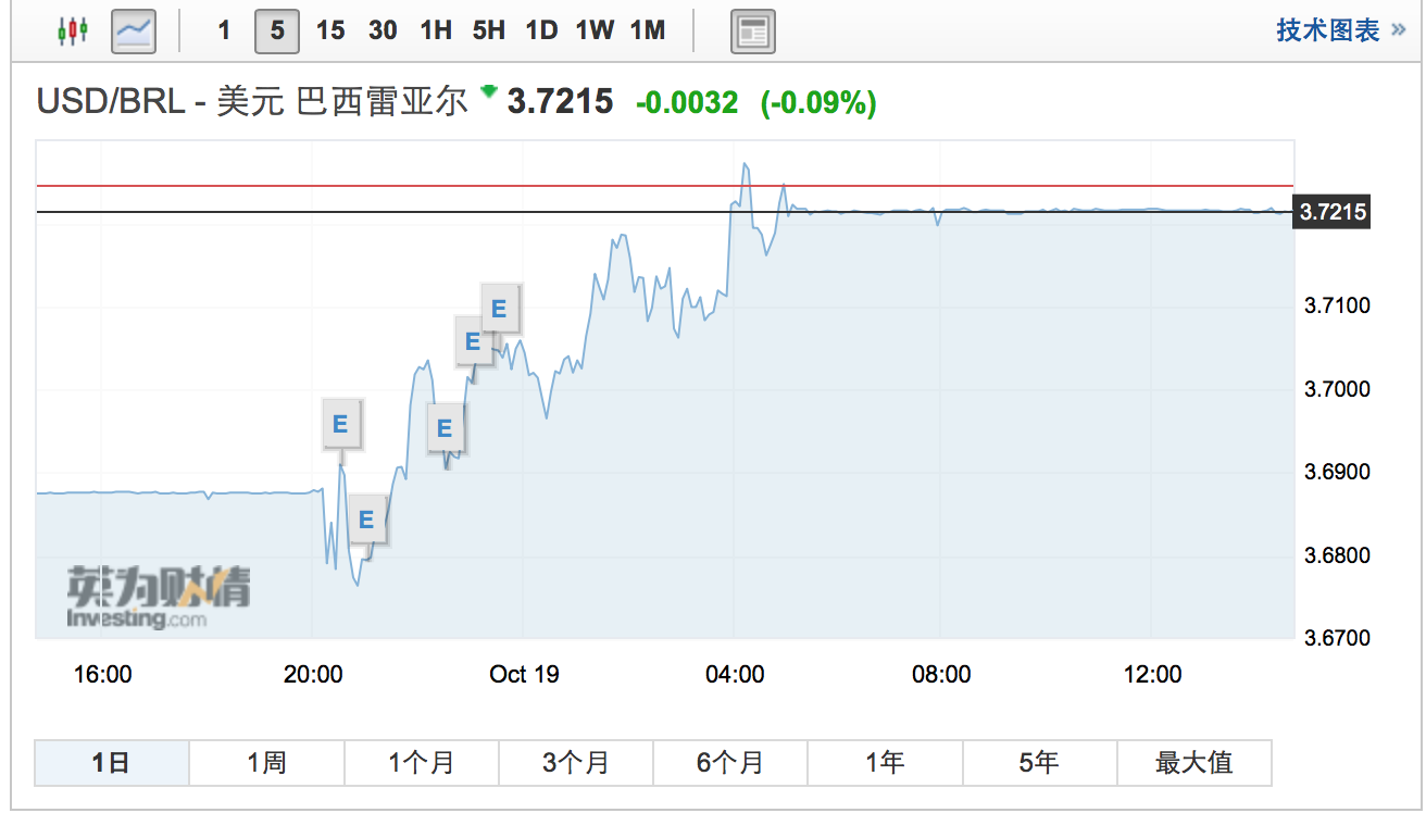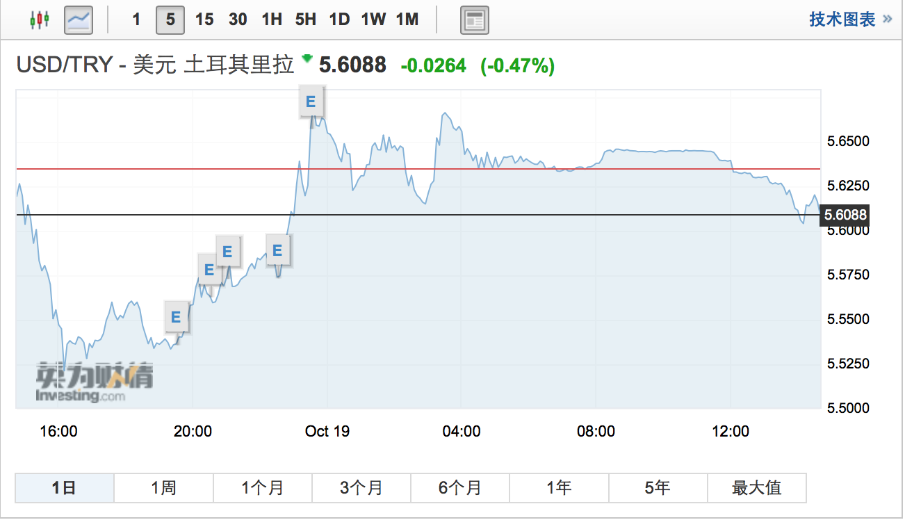 阿根廷比索兑美元汇率再度走弱,截至第一财经记者19日下午截稿时为36.6280;土耳其里拉18日贬值后小幅反弹,截至记者19日下午截稿时为5.6088;巴西雷亚尔也再度贬值至3.7215;MSCI新兴市场指数自10月12日以来的反弹幅度也再度缩窄。
