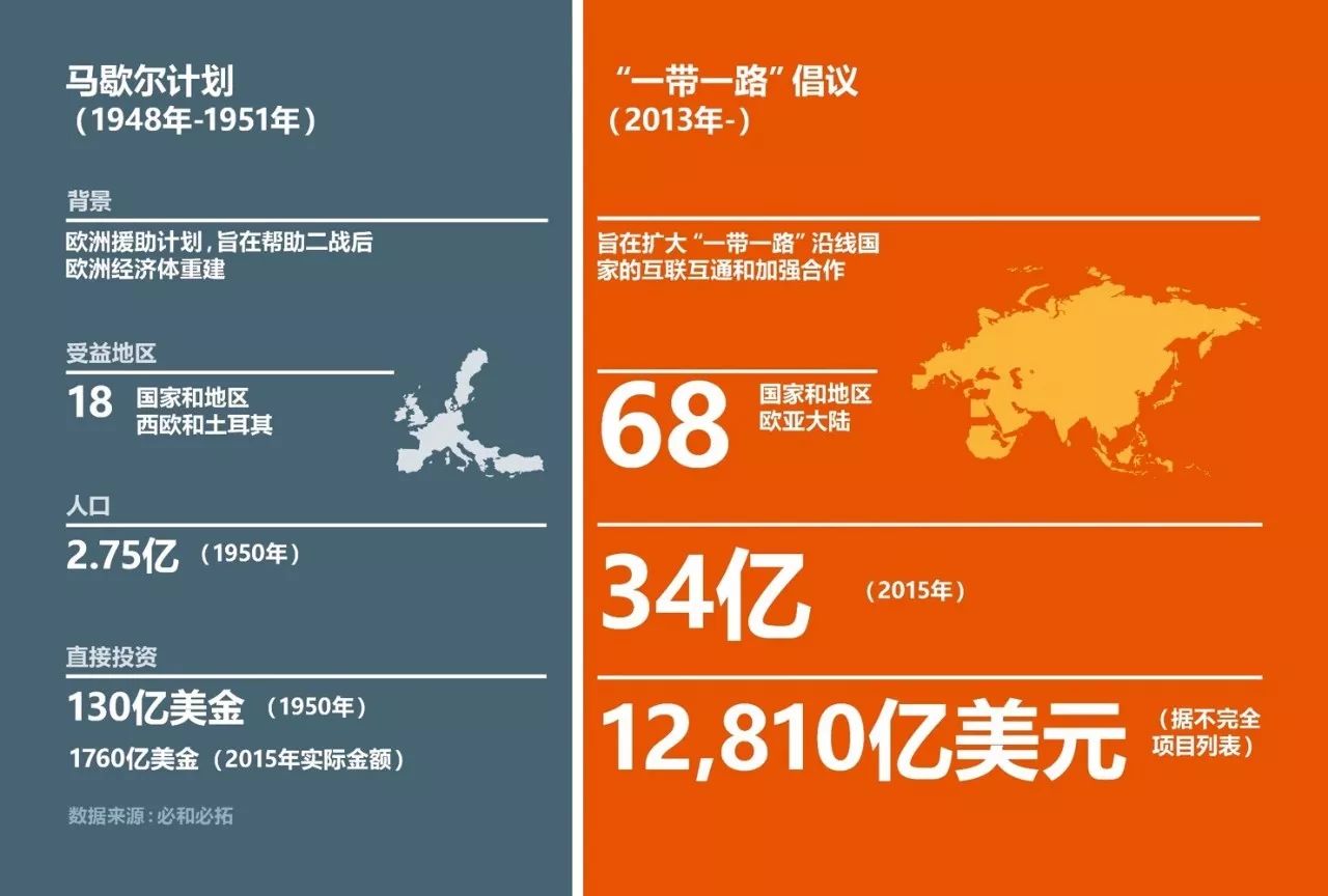 尽管在上文中提到的对于“一带一路”相关国家的直接投资规模巨大,但这并不能满足各方对基础设施的需求。不过正如亚洲开发银行所强调的,亚洲地区庞大的基础设施投资很可能按40:60的比例对公共和私有部门进行分配。“一带一路”项目亦可作为拉动其它投资的基石,引进更多的投入资金,既可以满足巨大的基础设施需求量,又能通过与成员国之间的合作来降低隐性的投资风险。由此可见“一带一路”倡议的推行将有可能成为经济发展良性循环的催化剂,正如70多年前“马歇尔计划”成功帮助了那些被战争影响的欧洲各国经济重建和复苏一般。
