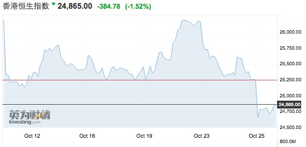日本、韩国股市都出现了较大幅度的跌幅。截至10月25日14:30,香港恒生指数大跌1.93%,不过A股跌幅全面收窄,上证指数跌幅收窄至0.4%,此后由跌转涨。上证50指数尾盘翻红,沪指、深成指、创业板指跌幅持续收窄,券商板块尾盘再度冲高。