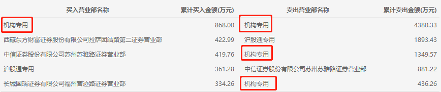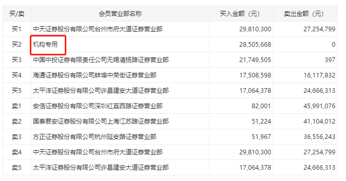 在卖出排行榜上,机构卖出最多的中天能源有3家机构进行了卖出,合计净卖出金额5298万元。