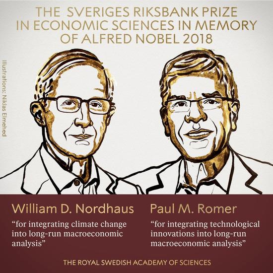 2018年诺贝尔经济学奖授予威廉·诺德豪斯(William Nordhaus)和保罗·罗默(Paul Romer,下称“罗默”),以表彰其在气候变化与技术创新领域的贡献。诺贝尔奖官方称,两人提出的方法致力于解决我们这个时代最根本和最紧迫的一些问题:全球经济的长期可持续增长和世界人民的福利。