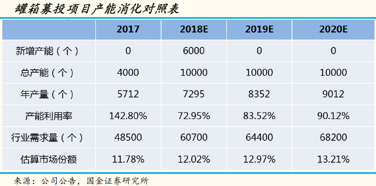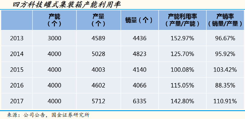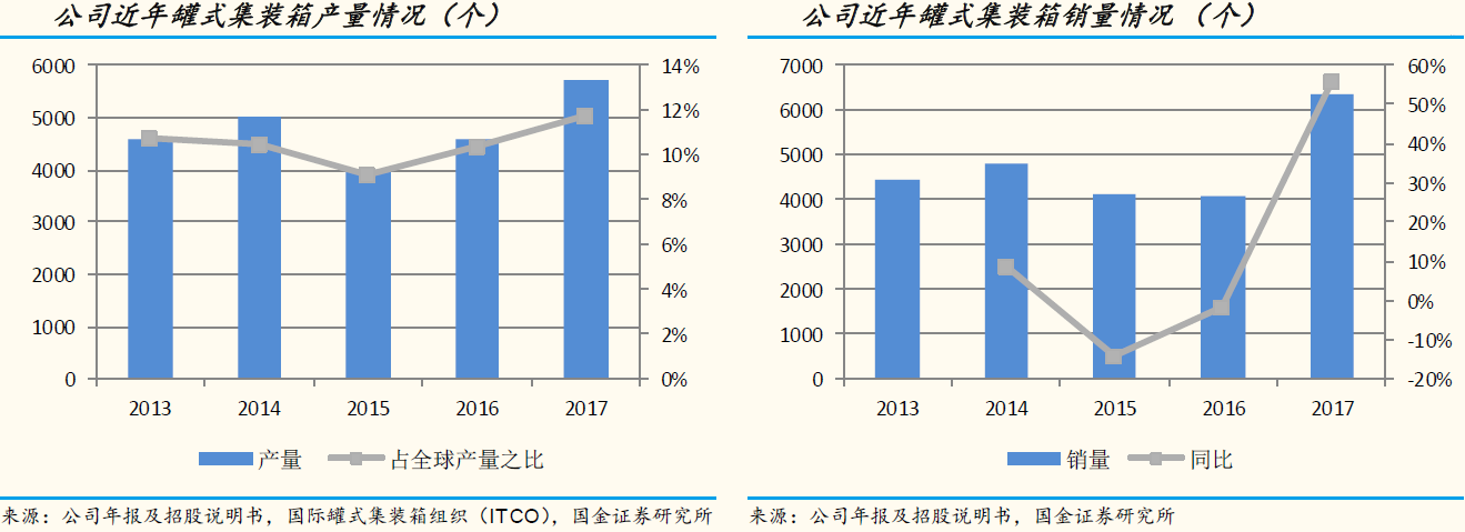 2016年上市融资后,公司开启罐式集装箱扩产的募投项目,规划总投资1.33亿元。经过一年多的基础建设、设备安装调试,项目已经于5月19日正式投产运营,扩产后公司罐式集装箱的实际产能将超过10000台/年。按照项目规划,投产后三年内产能逐步爬坡,假设至2020年产能利用率达到90%,2018~2020年新增产量预计占到行业新增需求的16.7%,新增产量能够得到市场消化。国金证券指出,募投项目的陆续投产有助于缓解公司产能瓶颈,进一步巩固公司在罐式集装箱和速冻设备的行业地位,并为公司未来业绩增长提供支撑。