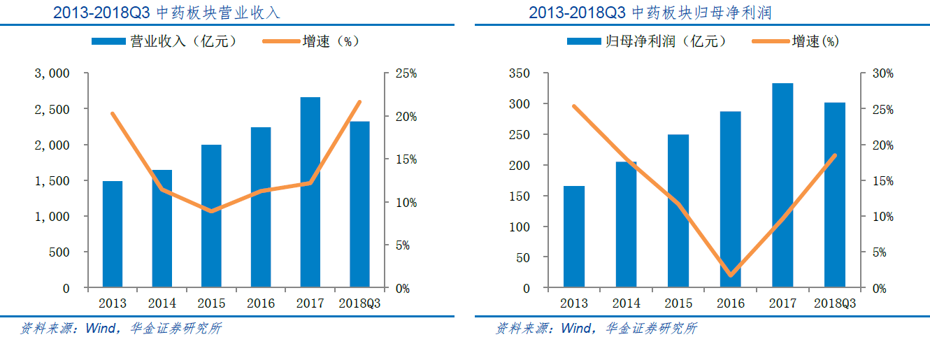 ③中药:药板块2018年三季度实现营业收入2323.17亿元,同比增长21.63%;归母净利润301.52亿元,同比增长18.47%。行业发展压力大,中药消费品仍值得关注;