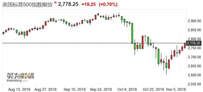 受美国中期选举影响,7日美国股指期货全线上涨,标普500指数期货上涨0.71%至2778.7点;道琼斯30指数期货大涨146点至25787点;纳斯达克100指数期货上涨1.1%至7093.5点 。