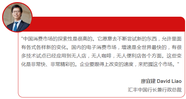 首届进博会盛大开幕,汇丰中国行长兼行政总裁廖宜建在进博会第一财经演播厅接受现场专访。他表示,中国消费市场的爆发式增长有其独特的原因和特性。未来,海外企业只有跟得上消费者对科技的钟爱以及技术应用的变化速度,才能把握这个市场。