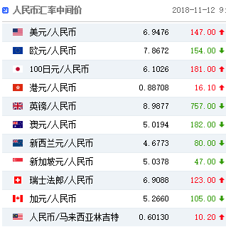 人民币中间价今日下调147点,报6.9476,已是连续第三天调降。上一交易日中间价6.9329。上个交易日官方收盘价6.9440,上日夜盘收报6.9560。