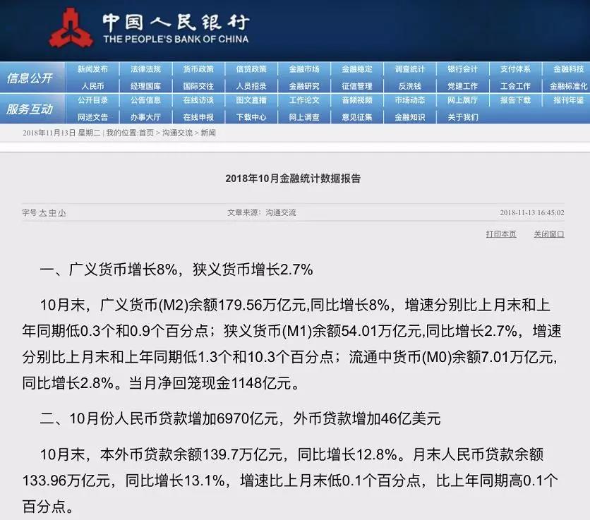 3、10月末,广义货币(M2)增速8.0%,再跌至历史最低;