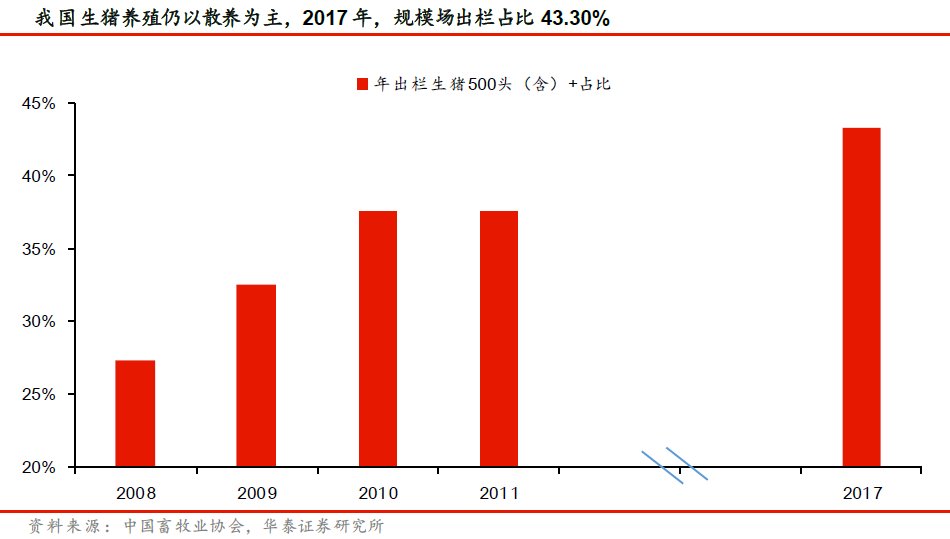 目前,我国生猪养殖市场结构分散,仍然以散养为主,2017年,我国生猪养殖企业CR5仅为5.32%,对比美国(CR5)38.11%,我国生猪养殖企业集中度较低。华泰证券认为,猪周期的优胜劣汰法则加速落后产能退出,驱动行业规模程度提升;生猪环保政策、非洲猪瘟防控政策的推行也将进一步提高我国生猪养殖集中度。