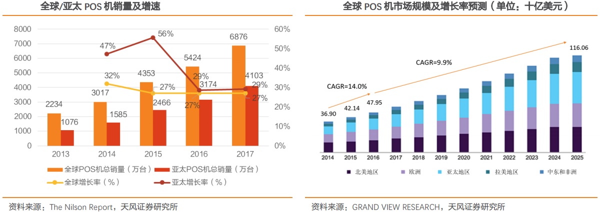 公司是国内POS与识别硬件龙头,是国内第一大、全球第二大POS机生产商,是国内第一大、全球第六大条码识读设备生产商,并且条码识读设备唯一进入世界前十的中国企业。天风证券指出,受益于全球POS机及识别硬件行业市场规模的持续增长,公司硬件设备有望持续稳健增长。且国通星驿与POS硬件协同效应逐步显现,销售费用大幅降低,公司硬件业务盈利能力提升。