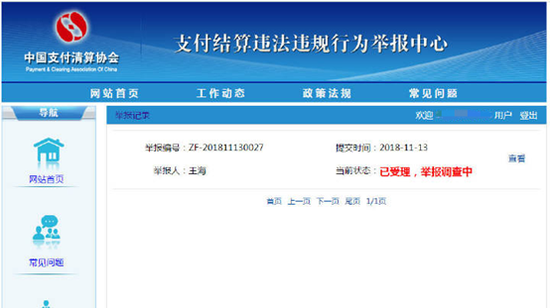 根据中国支付清算协会官网显示,目前该举报已经被受理。