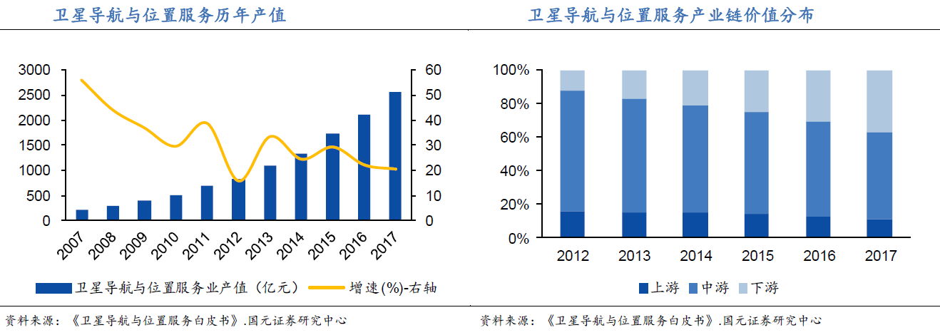 根据中国产业信息网预测,至2020年我国北斗导航系统市场规模将达到2443亿元(CAGR27.8%),其中细分行业应用则有望达2237亿元(CAGR27.3%),智能手机终端市场约为1047亿元,车载导航市场1190亿元。财通证券认为,北斗作为能够精准获取空间与时间的技术手段,未来将在物联网、智能城市中发挥巨大的应用价值。