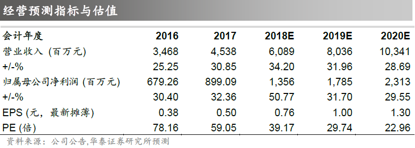 华泰证券预计公司2018~2020年归母净利润分别为13.56/17.85/23.13亿元(考虑一次性投资损益及政府补助)。公司是心血管、糖尿病、肿瘤等慢病领域的平台型企业,理应享受一定估值溢价,给予公司2018年48~50倍的PE估值,维持“买入”评级。