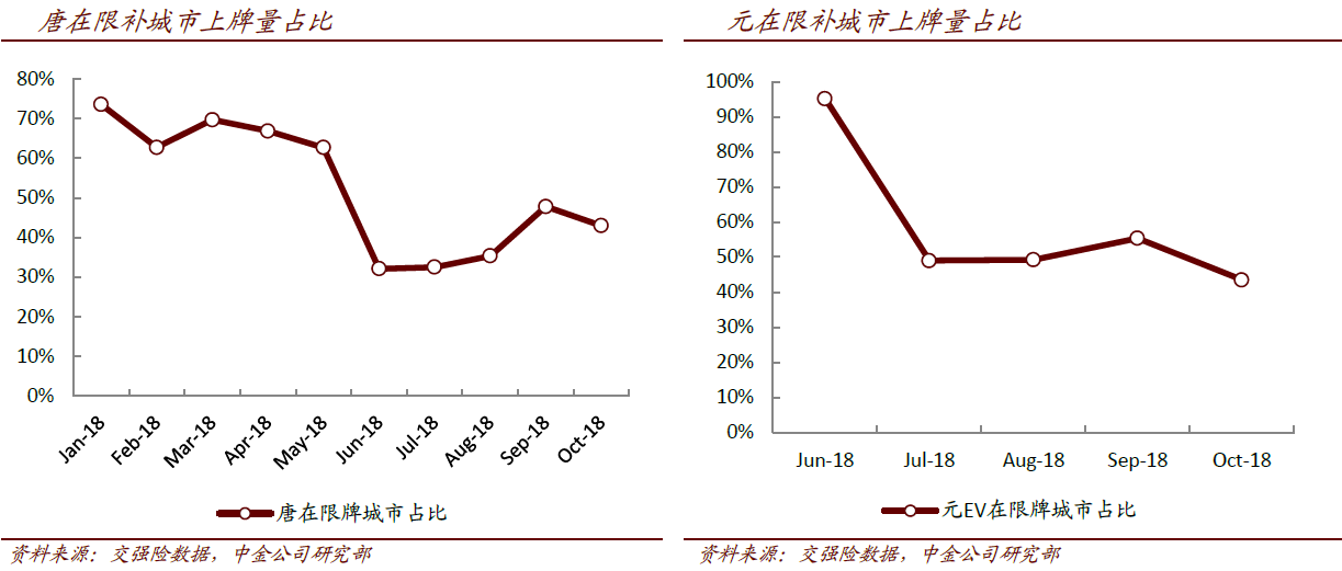 比亚迪(002594.SZ)在新能源汽车领域已形成较强的品牌力。中金公司认为公司凭借多年的技术和经验积淀,已经成为部分消费者心目中新能源汽车首选品牌。其中,随着全新唐dm、元EV的上市,非限购城市的消费者接受程度显著提高。10月,比亚迪在非限牌城市的上牌量占比已达45%,其中唐dm和元EV非限牌城市的销量均超过50%。这意味着即使在没有牌照差异的情况下,更多消费者开始选择比亚迪的新能源汽车。
