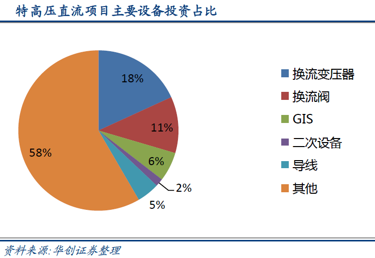 华创证券指出,特高压投资对电气设备具有刚性需求,核心设备投资需求600亿元左右。按照新建特高压直流工程投资220~260亿元、新特高压交流投资150~250亿元测算,新建“五交五直”特高压将新增交直流变压器投资315亿元,换流阀148亿元,GIS 175亿元,继电保护等二次设备40亿元。特高压投资对交直流设备具有刚性需求。