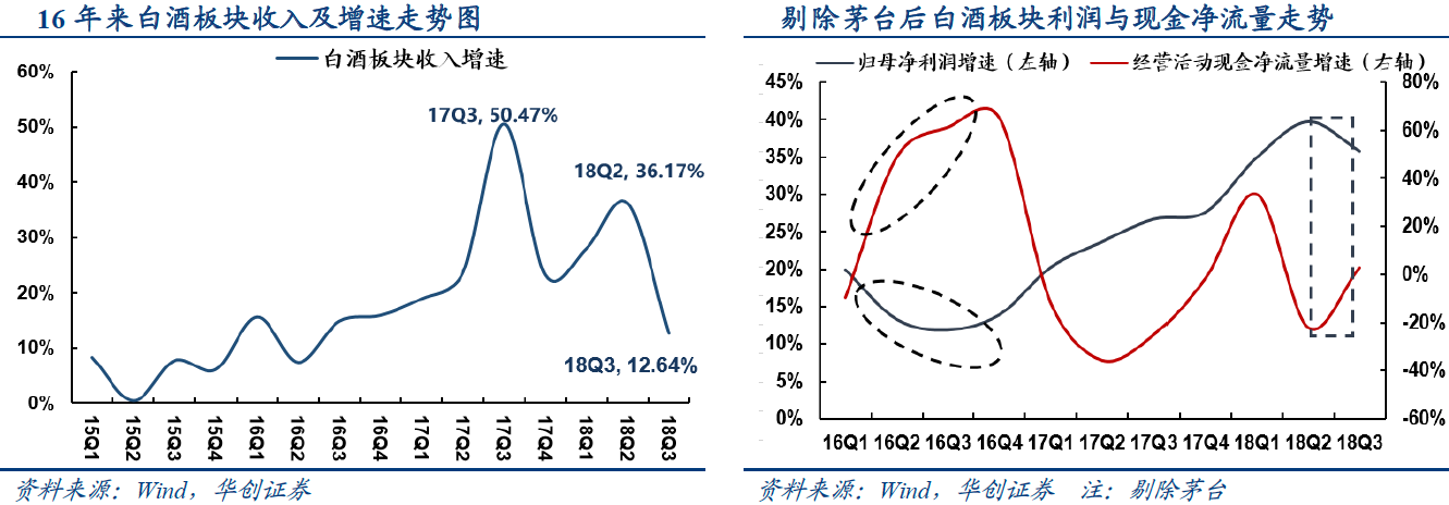 华创证券认为,白酒板块短周期正换挡,长周期仍繁荣。白酒行业2016年以来的短周期高增长临近尾声,开始逐步回落,来自行业自身库存周期,从销售端到渠道端再向报表端传导,带来利润表与现金流差异。预计短周期之下板块盈利进入下调期,行业增速换挡,展望明年有望维持正增长。