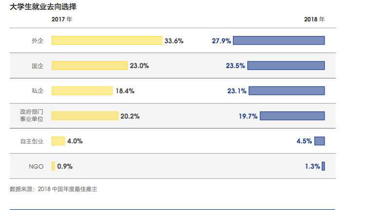 这份名为《2018中国年度最佳雇主评选报告》称,大学生对于第一份工作预期的收入多年来呈现逐年增加的趋势,去年为4%的增长,今年增幅提升到了8%。