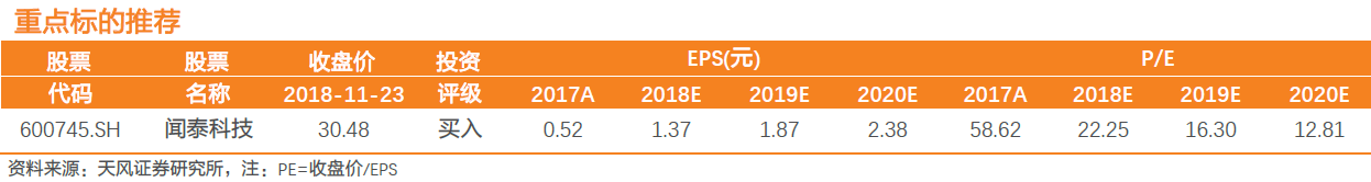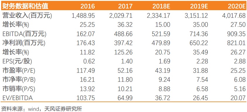 天风证券预计公司2018~2019年归母净利润为4.80/6.50/8.21亿元,对应EPS分别为1.69/2.28/2.88元,给予“买入”评级。