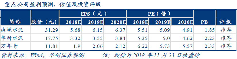 华创证券基于水泥行业的高盈利与低估值,推荐高景气度的海螺水泥(600585.SH)、华新水泥(600801.SH)、万年青(000789.SZ)。