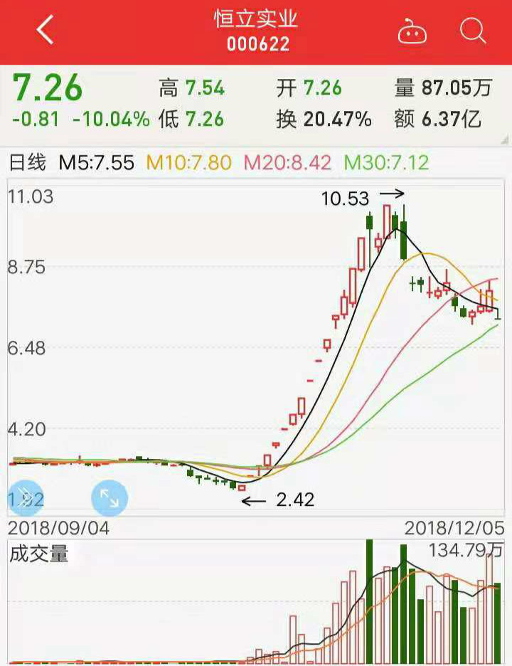恒立实业(000622)今日跌停,报7.26元,成交额6.37亿元,换手率超20%。