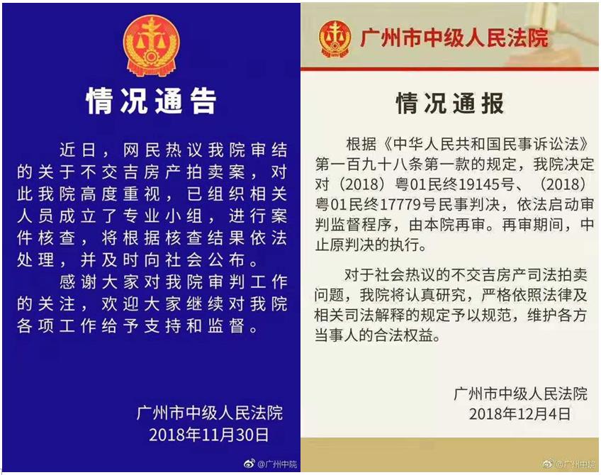 广州中院的判决结果也引发了社会热议,为此,广州中院连发两条微博回应,并启动再审程序,中止原判决的执行。