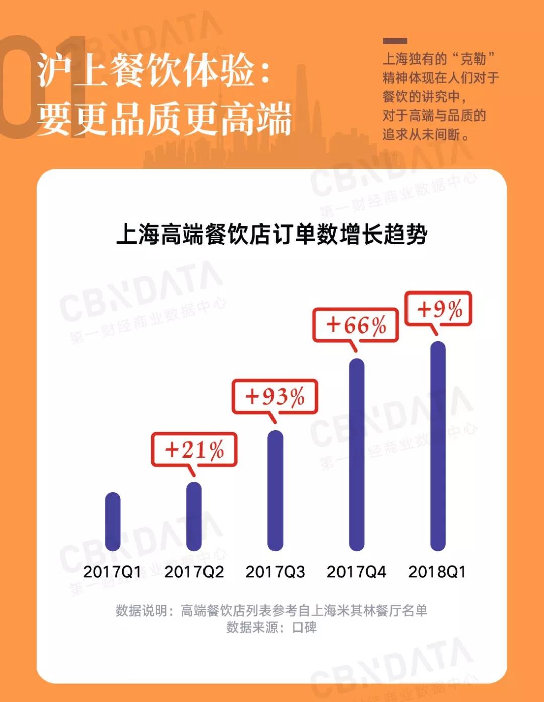 尽管价格不菲,但是“克勒精神”的驱动下,上海的食客们还是对这些高端餐厅趋之若鹜。CBNData研究显示,上海高端餐饮店整体订单数呈高速发展状态,尤其是2017年下半年,增长势头迅猛。