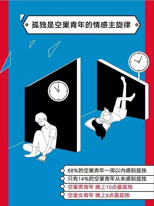 (图为调研发现孤独是空巢青年生活主旋律,68%的空巢青年一周以内感到孤独。图片来源:网易新闻)