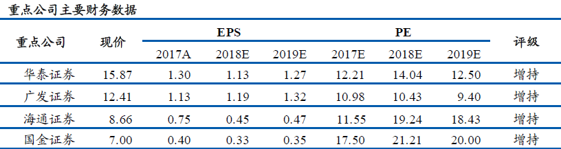 东北证券认为,科创板的设立及注册制试点将直接增加券商投行承销保荐的利润增长点,利好于本身项目储备丰富、与中小企业关系良好的券商,具备成熟投行团队、优质项目储备和定价能力的券商将迎来盈利增长点,推荐具有良好目标领域项目布局和投行业务能力的华泰证券(601688.SH)、广发证券(000776.SZ)、海通证券(600837.SH)和国金证券(600109.SH)。