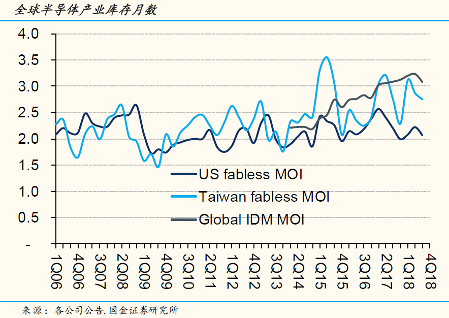 根据2018年12月中旬的全球IC企业家大会上的讨论,从全球来看:①行业2018年四季度增速预计会继续下降到6%,这一轮半导体的超级周期已经进入尾声,半导体需求向宏观经济靠拢,因此预计2019年上半年是行业最为艰难的时刻;②目前行业渠道存在一定库存,消化这些可能要两个季度以上;③长期看,由于数据量爆发,整个行业一定会再次是向上的。