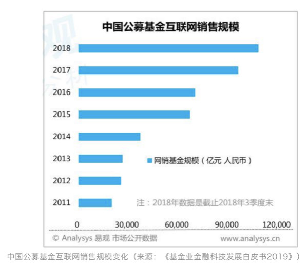 最新发布的《2019基金业金融科技白皮书》(下称《白皮书》)显示,截至2018年三季度末,网销基金规模达108360.8亿元,通过线上销售的公募基金占比已达81%以上。其中,基金行业第三方服务平台尤为引人关注。