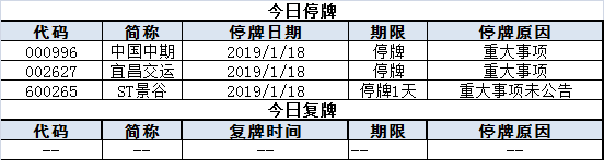 上市公司停复牌统计: