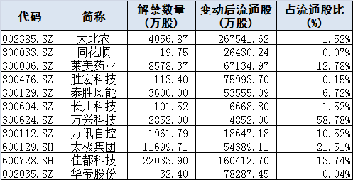 限售股解禁: