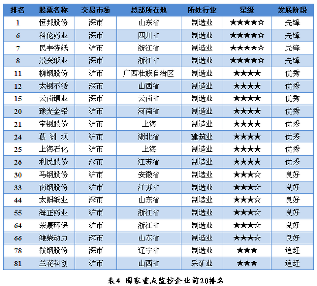 国家重点监控企业前20排名。资料来源:《中国上市公司环境责任信息披露评价报告(2017年)》
