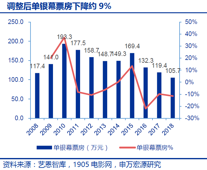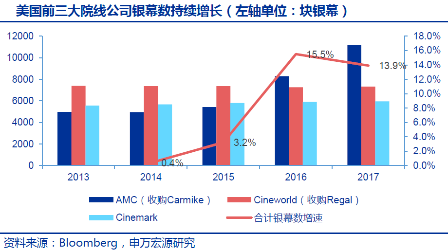 2018下半年国内约300家影城关闭,标志行业出清启动。目前单体影院票房呈下行趋势,规模较小、自由现金流趋紧的影投公司将被逐步挤出市场。院线龙头在既有影城选址、管理运营能力、采购成本等方面具备优势,未来在基于会员体系的售票、卖品销售、整合营销等业务将具备更强的掌控力。申万宏源指出,对标北美市场21世纪初经历第一轮中小院线并购整合,近年来国际化并购带动第二轮整合,目前三大院线公司银幕市占率46%,远高于目前国内前五大影投公司不足20%的银幕占有率。