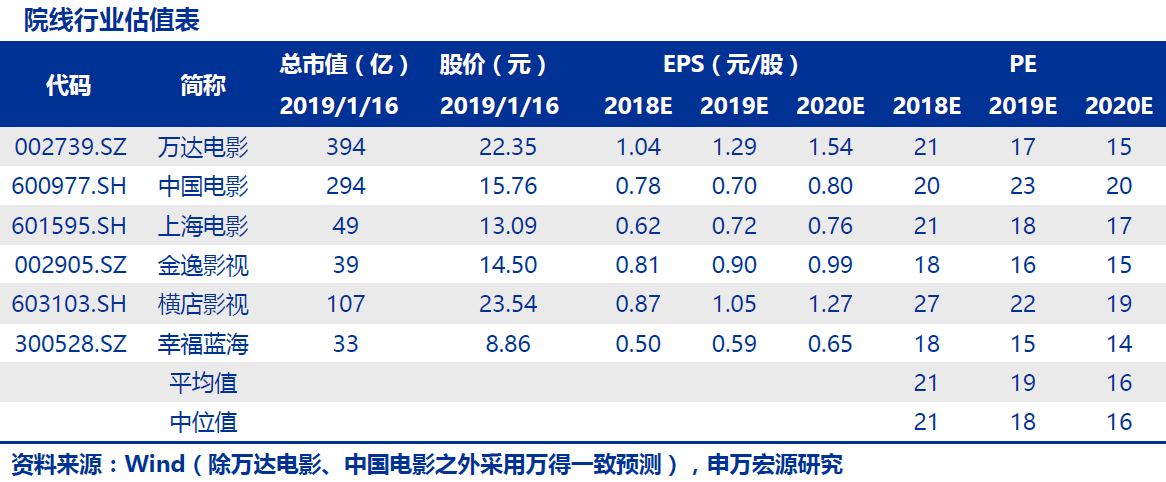 (1)2019年国内票房前景乐观,院线行业龙头自由现金流持续改善。长期看单银幕票房拐点有望在2021~2022年来临,在此期间规模小、管理能力弱的影院资产亟待出清。行业整合利好龙头提升经营效率。