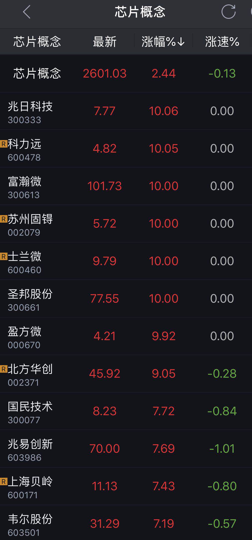 | {{item.suffixTags}} | {{ item.stockName }} {{ item.code }} | {{ item.close }} | {{ item.upDownPer }} | {{ item.upDown }} |